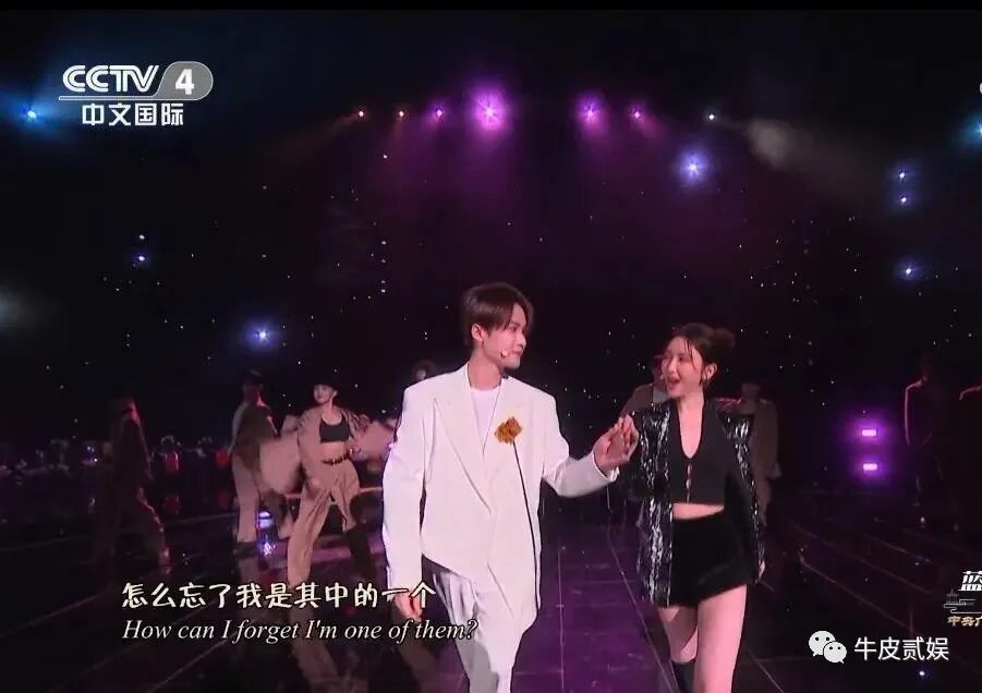 毛晓彤身穿亮闪外套,黑色短裤搭配一双长腿靴,性感又魅惑,在舞台上与檀健次的白色西装形成完美的搭配。