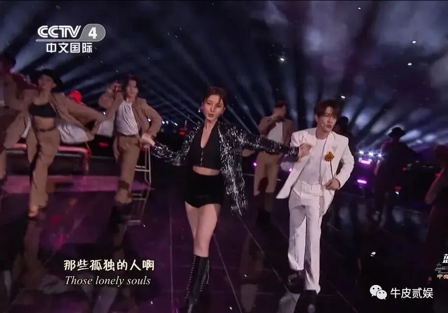 在舞台上毛晓彤和檀健次用一段拉丁双人舞共同演绎了《孤独颂歌》。