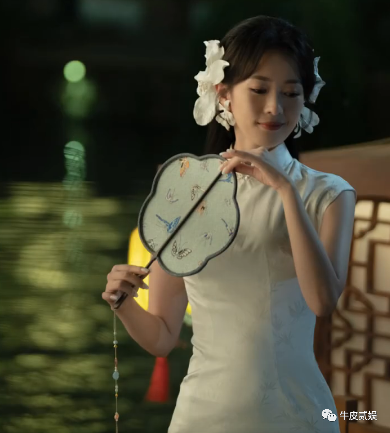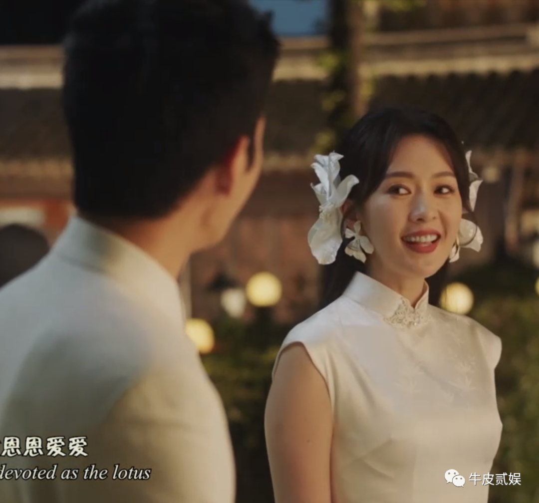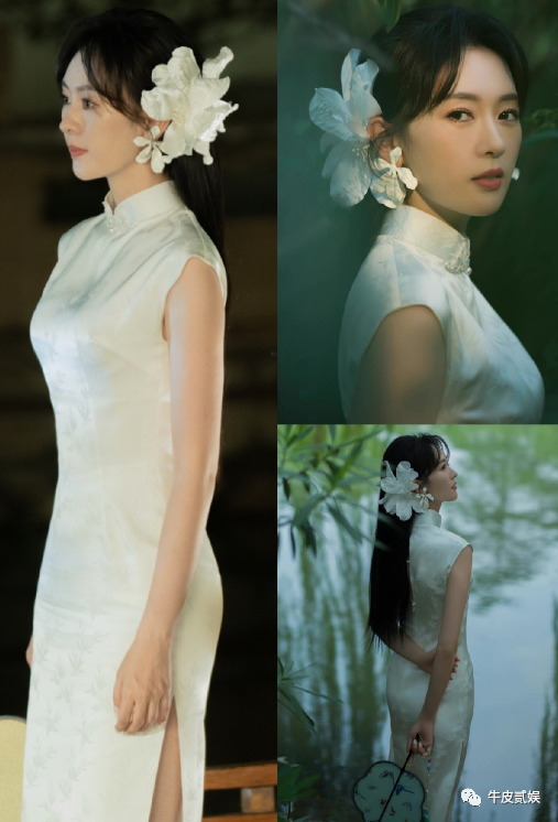 童瑶的一身白色旗袍,头戴白绸红花的造型也堪称经典镜头。