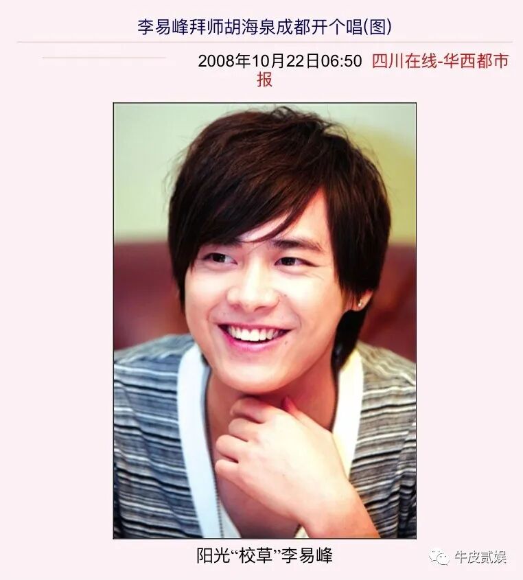 不过,李易峰还是靠着粉丝们的力量成功地出圈了,并且很顺其自然地签约了胡海泉的EQ唱片公司,成了胡海泉旗下的艺人。
