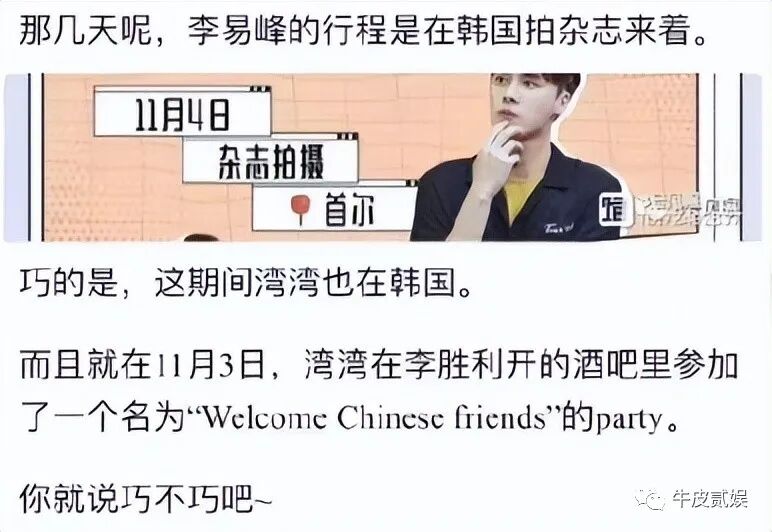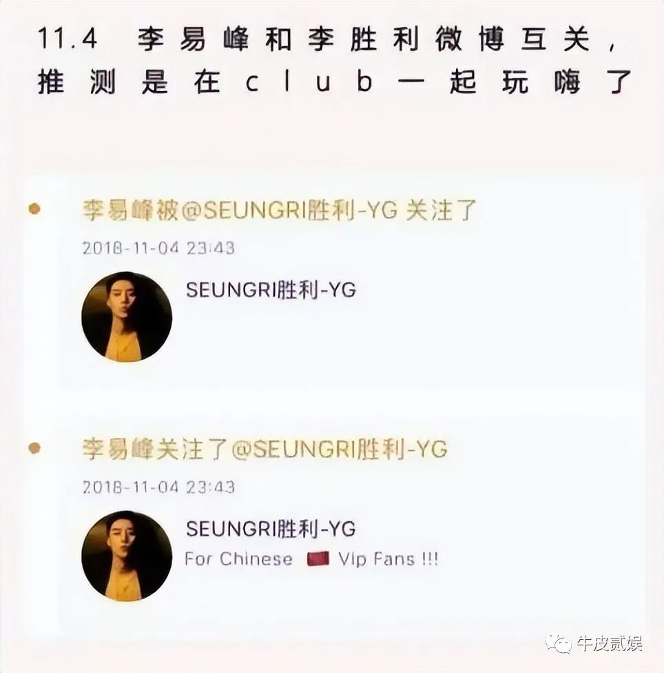 2018年,李易峰在跨年的时间档口和一个叫“湾湾”的网红传出了绯闻,据说这个湾湾和韩国的李胜利很熟悉。