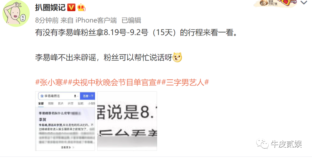 而这个叫李贺的男人,不是别人,正是李易峰,李贺是他原名,随着他在中秋晚会上被除名的事实,这事也就八九不离十了。