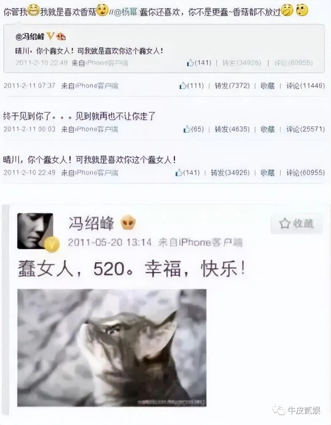 即使出席活动时,两人依然很亲昵地坐在一起,有时冯绍峰还时不时地偷偷地瞄向她丰满的身材,以显示自己的“真诚”。