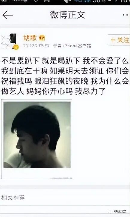 在他们决裂的那天,胡歌借酒浇愁,发文称:“如果明天去领证,你们会祝福我吗?骂名你开心了吗?我尽力了。”