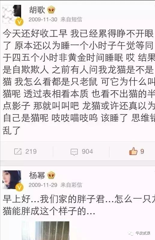 有一次,他俩在社交平台上亲密互动,胡歌在自己的平台上称自己的龙猫找不到了,并说道:“我想我的龙猫去找她的鱼了。”