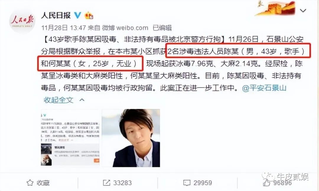 但是在2018年陈羽凡却因吸毒而被警方抓获,同行被抓的还有另一位女子