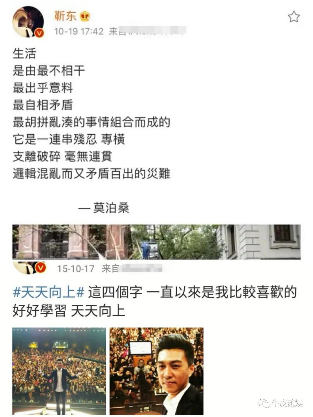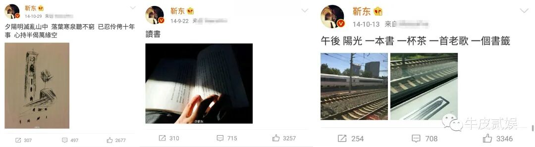 翻看靳东的微博,你会发现很“高大上”,不是作诗吟赋,就是晒他读书的照片,或者就来上一句名人名言。