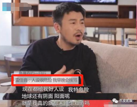 比如雷佳音,他因热播剧人气大涨以后,身上就莫名其妙地多了很多人设,他说:“人设很危险,我早晚会挨骂,人不可能都是完美的,地球也有阴阳两面呢!”