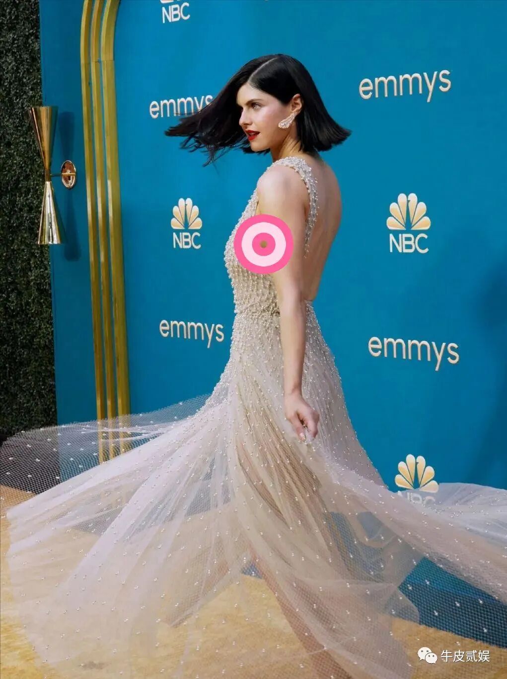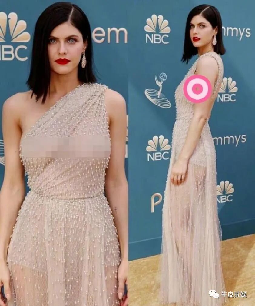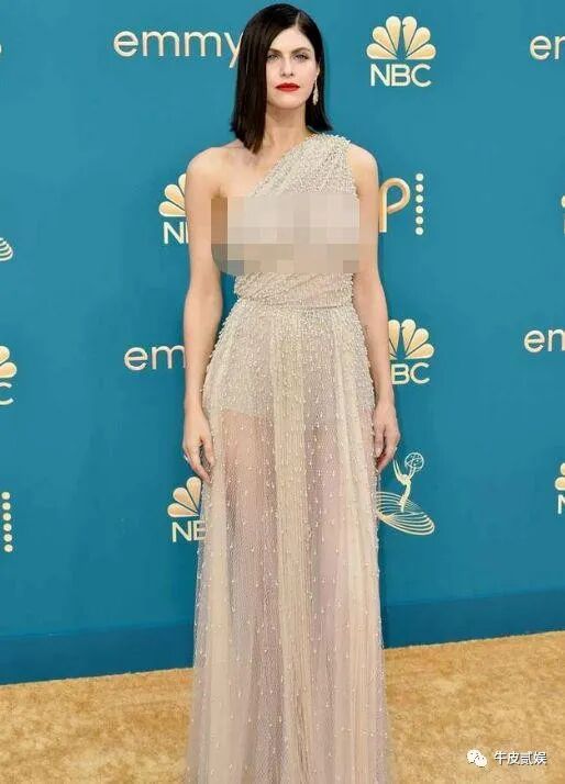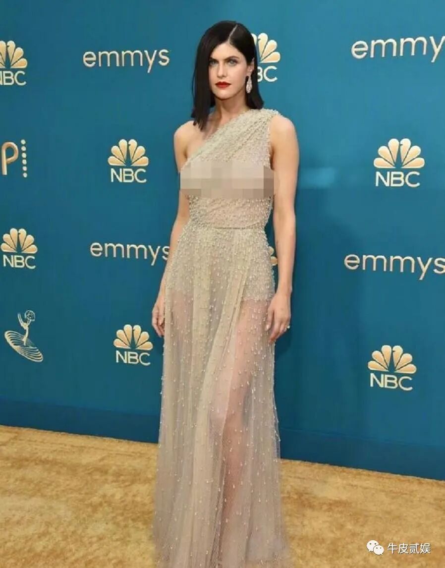 此次艾美奖,达达里奥选择了一身单肩斜挎的长款纱裙,虽然是纱裙,但裙子的上半身几乎是透明的,尺度可不小。
