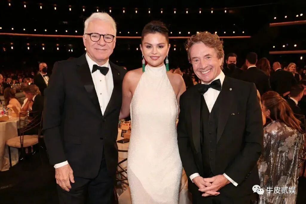 这次艾美奖《公寓大楼里的谋杀案》主演三人作为颁奖嘉宾齐上台,赛琳娜的白色挂脖礼服就很是出众。