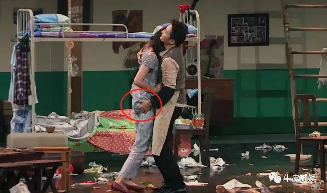 演戏过程中,涂老哥手不老实,在搂抱齐溪的过程中,摸到了她的臀部,看起来还挺使劲。