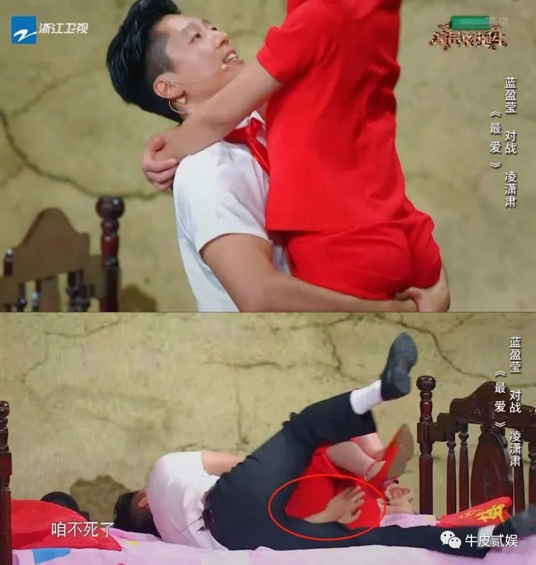 后是抱起,但这个动作很明显摸到了关键部位,尽管凌潇潇满脸的兴奋,但这个动作还是被很多网友质疑。