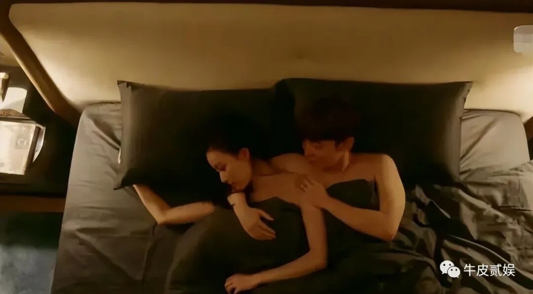 当时两人光着膀子躺在床上,倪妮假装睡着,而董子健搂抱着她,但他的手似乎无处安放。