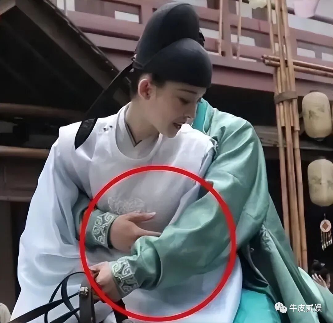 她在和许巍洲合作拍摄古偶剧《风起霓裳》时,也有过这样的场面,当时娜扎被他拉上马,随后一把抱住她的胸部。