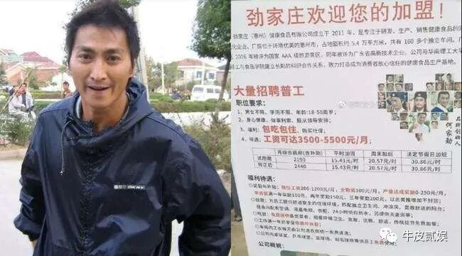 2011年,何家劲正式退出了演艺圈,开始走向社会做起了生意,他拿出自己全部的积蓄,和两位好友开了一家食品厂。