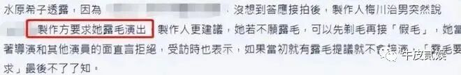 面对这样的无理要求,水原希子当场就拒绝了,但梅川老哥显然是不答应的,随后又修改了方案,让水原希子剃光体毛,然后贴上假体毛露出的建议。