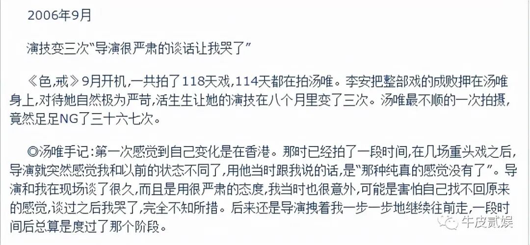 而事实上,汤唯也的确是李安要找的女演员,除了年龄上略微偏大,其他方面都是满分。