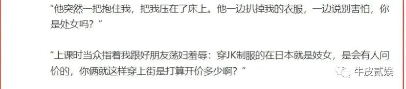 据这些爆料人的控诉,她们的经历就是人生中的一场噩梦,这种噩梦常常会在梦里把她们惊醒,并有可能伴随一生。