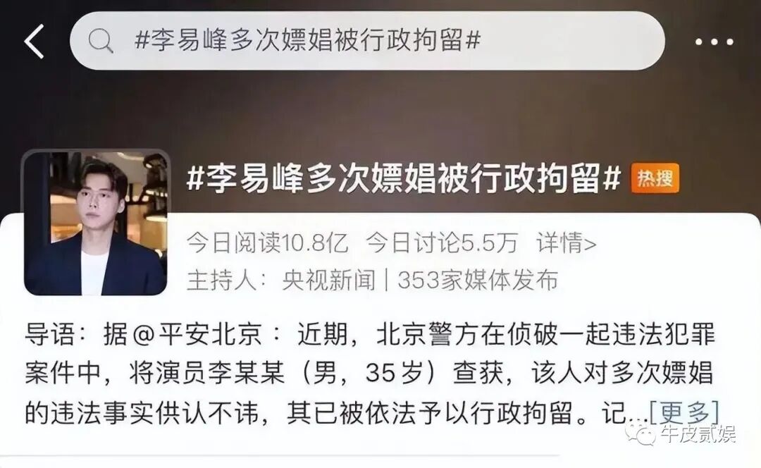先是顶流李易峰因多次嫖娼被抓,从而就此倒下,葬送了自己的星途不说,还成了过街的老鼠,人人唾弃。