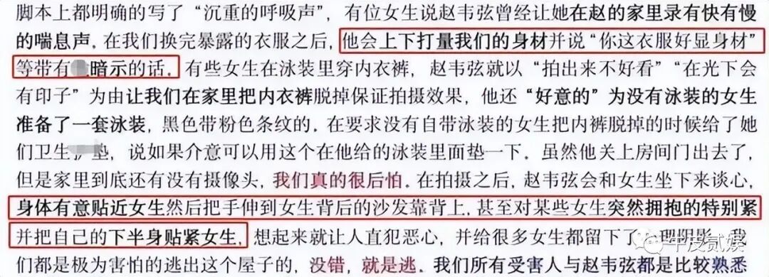 并且在拍摄的过程中,或者拍摄完毕后,他会找“听话的女生”谈心,谈的过程中,上下其手,一点也不老实。
