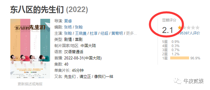 让他陷入到舆论中的是他号称“十年磨一剑”的电视剧《东八区的先生们》,因内容太辣眼睛,结果豆瓣仅有2.1分。