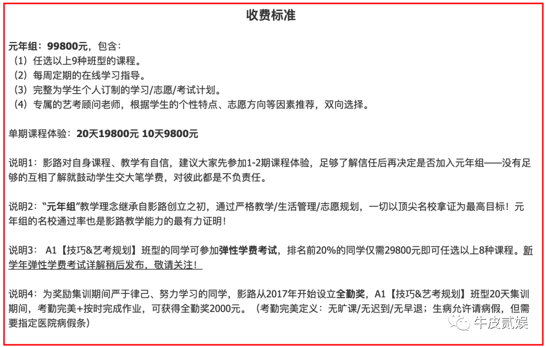 更牛的是,他的收费标准也是贵得离谱,10天的体验课收费9800元,20天的学费达到了19800元。
