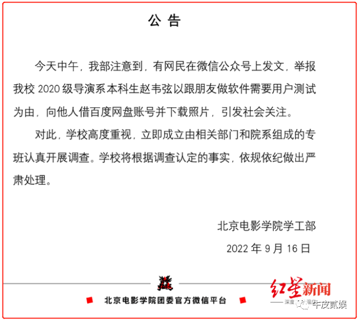 上周,北京电影学院的20级导演赵韦弦因骚扰多名女生,被网友实名举报了,消息一出,顿时引发了热议。