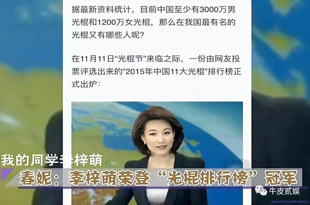 征婚失败也就算了,有一年李梓萌还入选了光棍榜的年度冠军。