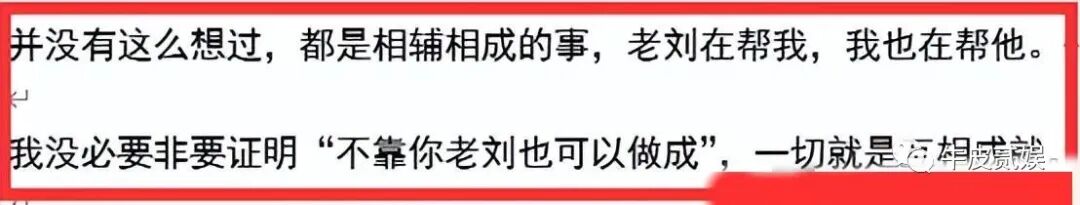 但章泽天却说:“我和老刘是在相辅相成,老刘在帮我,我也在帮他,一切都是相互成就。”