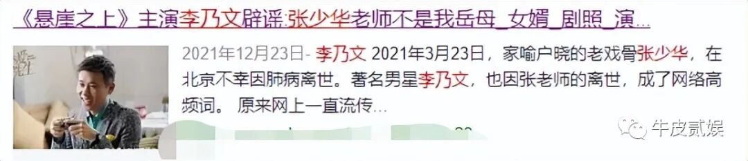 比如曾经,李乃文和老戏骨张少华在《六块六毛六》中饰演了一对母女,结果在这部戏拍完之后,李乃文便被传出是老戏骨张少华的女婿。后来因为这样的传言越演越烈,李乃文无奈之下,只能亲自站出来澄清。