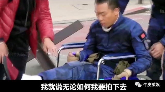 最终让医生给他架了几根钢棍,固定住小腿,坐着轮椅,忍着剧痛,继续拍摄。