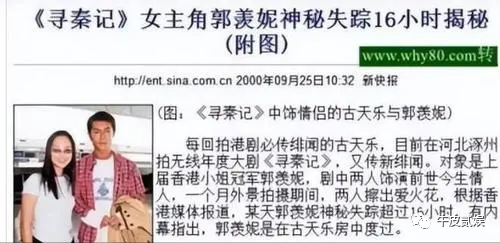 2001年,郭羡妮与古天乐合作《寻秦记》,拍摄期间神秘消失16个小时,正好古天乐请假,于是就传出了两人躲在房中温存的绯闻。