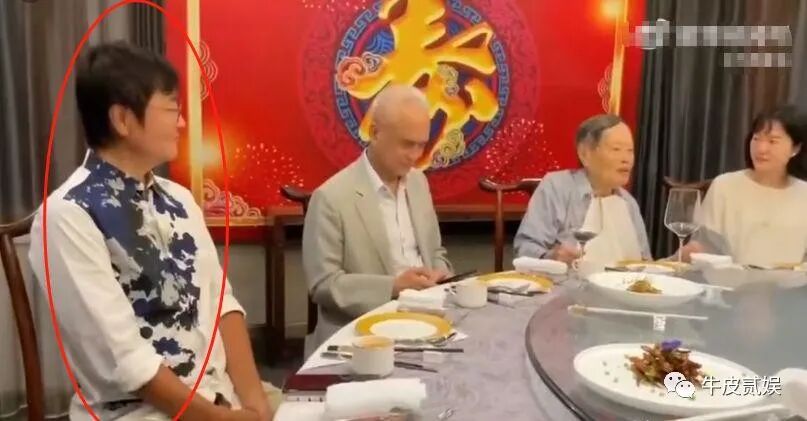宴会上,杨振宁穿了一件蓝灰色的衬衫,而翁帆的穿着打扮也很朴素,整个人相当地接地气。
