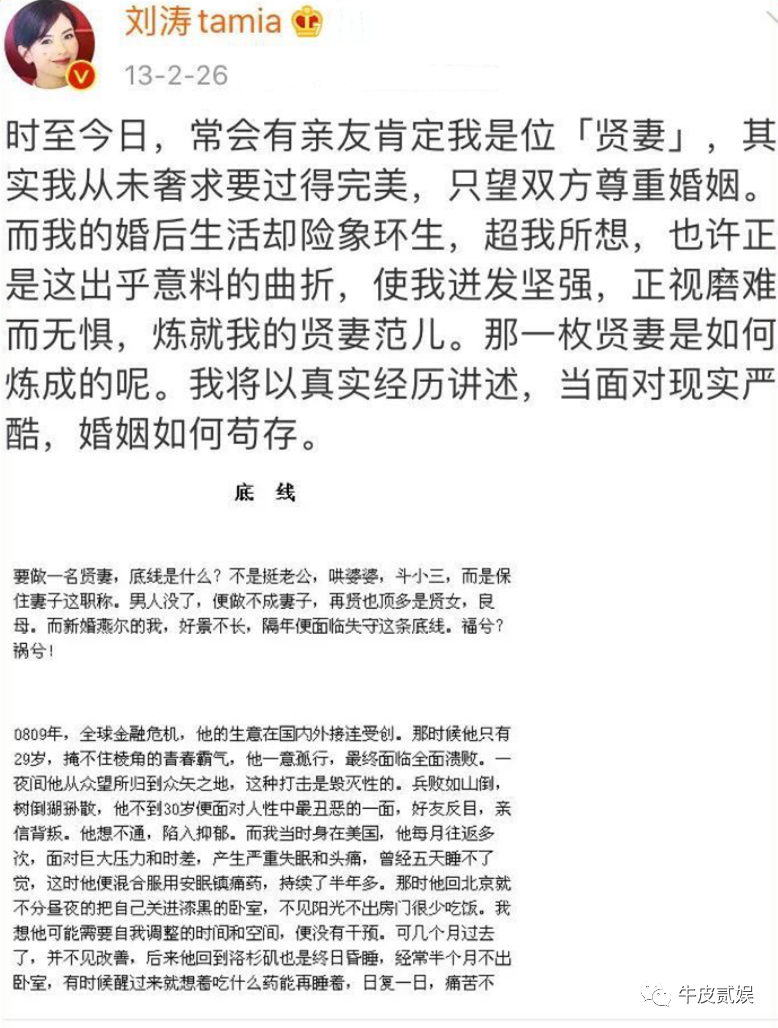这篇文章一经发布,就感动了无数网友,从此刘涛有了“国民贤妻”的称号。