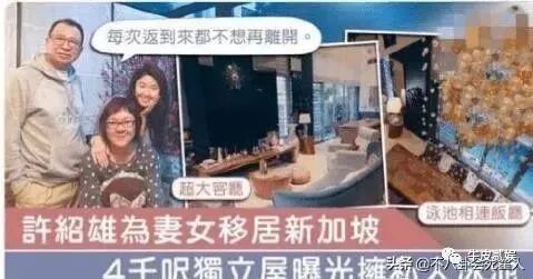 据悉,许绍雄一家住在3层高的豪宅中,装修是现代简奢风,还配有游泳池。