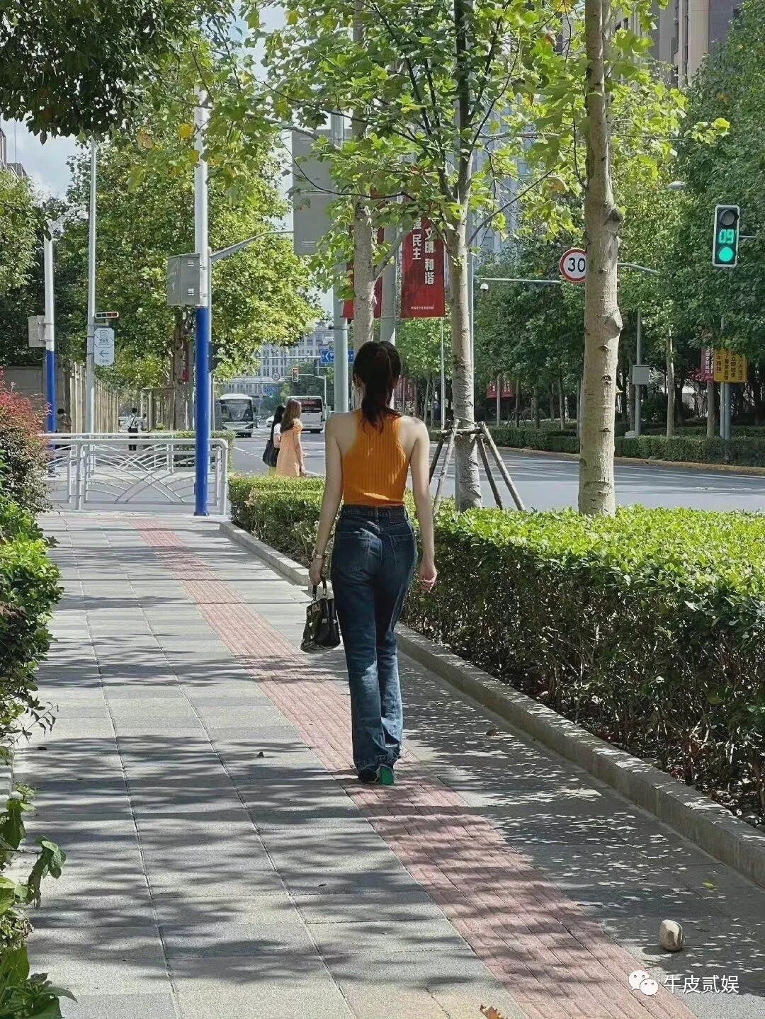 摄像师跟在舒淇身后,不停地拍着。为啥拍后面呢?因为好看呀!