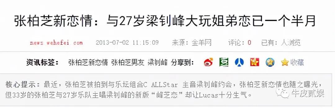 梁钊峰是C AllStar成员,那时候也已经小有名气,张柏芝比他大了整整6岁。