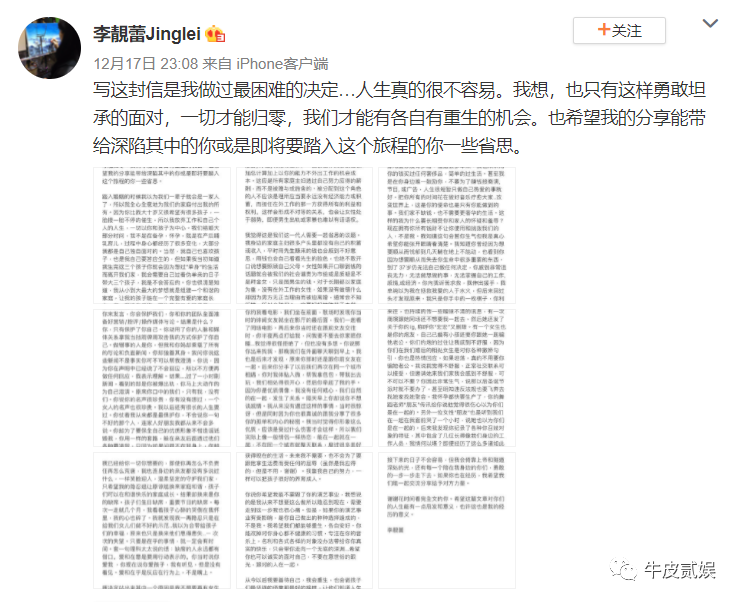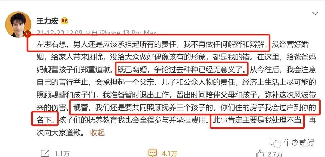2021年12月28日,李靓蕾突然发布长文控诉王力宏:婚内出轨、招J、冷暴力、与有夫之妇互约。