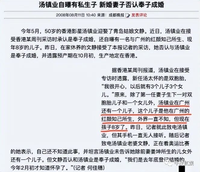 汤镇业曾经也是因为风流成性导致前女友的自杀,后来又被爆出婚内出轨,私生子至今都无法翻身。