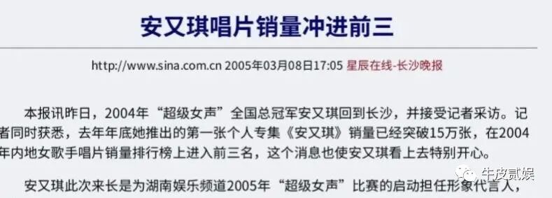 之后,公司为她制作名为“安又琪”的专辑,直接卖出15万张,喜提“中国内地女歌手唱片”销售榜前三名。