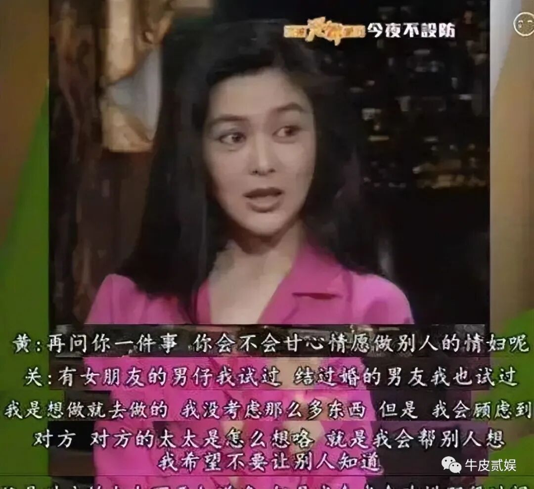 关之琳也够给力,说得很明白,也很直接,并希望自己做情妇不要让别人知道。