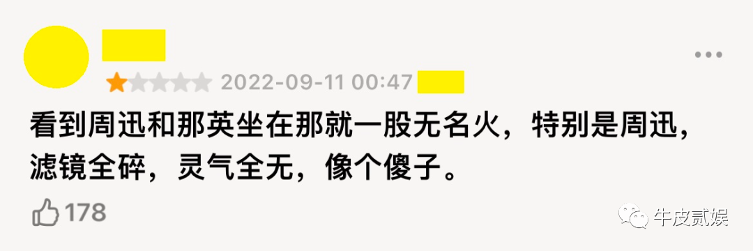 而一星的差评里,几乎都是在骂领笑员周迅、那英的,比如骂周迅,滤镜全碎,灵气全无,像个傻子。而那英也没好到哪去,骂她听个网络用语高兴得像个傻子。
