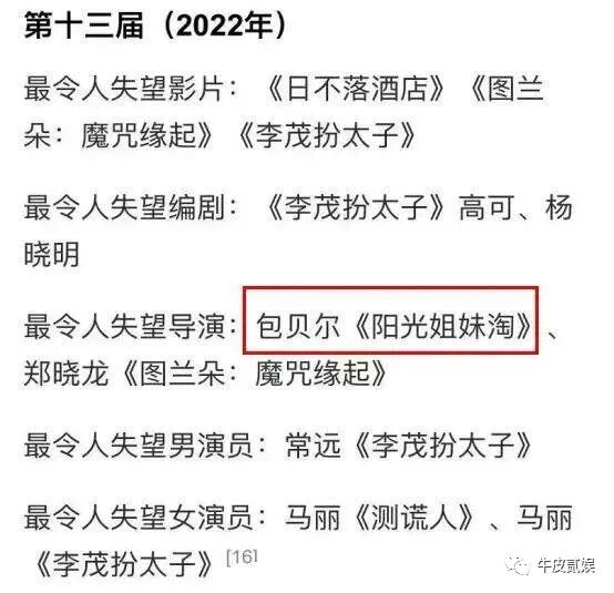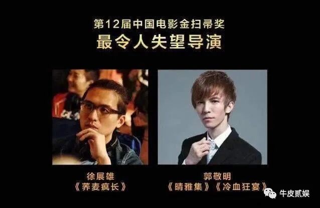 而包贝尔本人,也和王宝强一样,顺其自然地也被“金扫帚”评为了今年“最失望导演”的获得者。