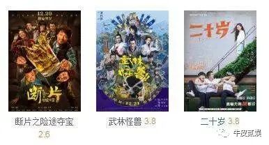 从《二十岁》《21克拉》到《欢喜猎人》《断片之险途夺宝》,再到《胖子行动队》等,部部都是名副其实的“大烂片”,评分几乎都是3分左右。