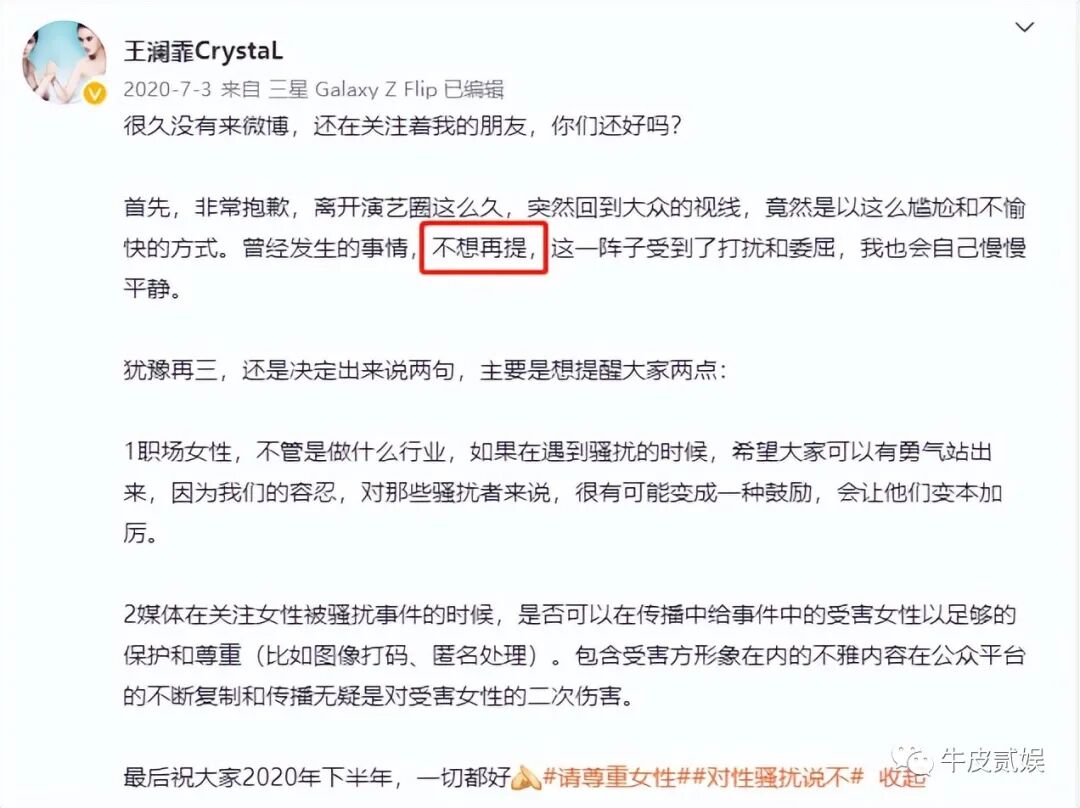 女演员后来在微博上提到这件事,用了“不想再提”四个字,想必大家就已经能够明白了。