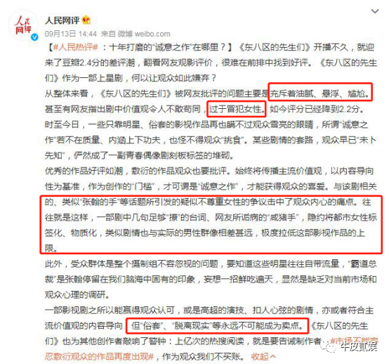 就连人民网都看不下去了,痛批这部剧价值观有很大的问题,不仅剧情俗套、脱离现实,甚至涉嫌物化女性。