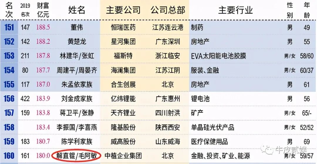 在2018年的时候,毛阿敏和解直锟夫妇就以180亿元的财富登上了胡润富豪榜,排在第129名。