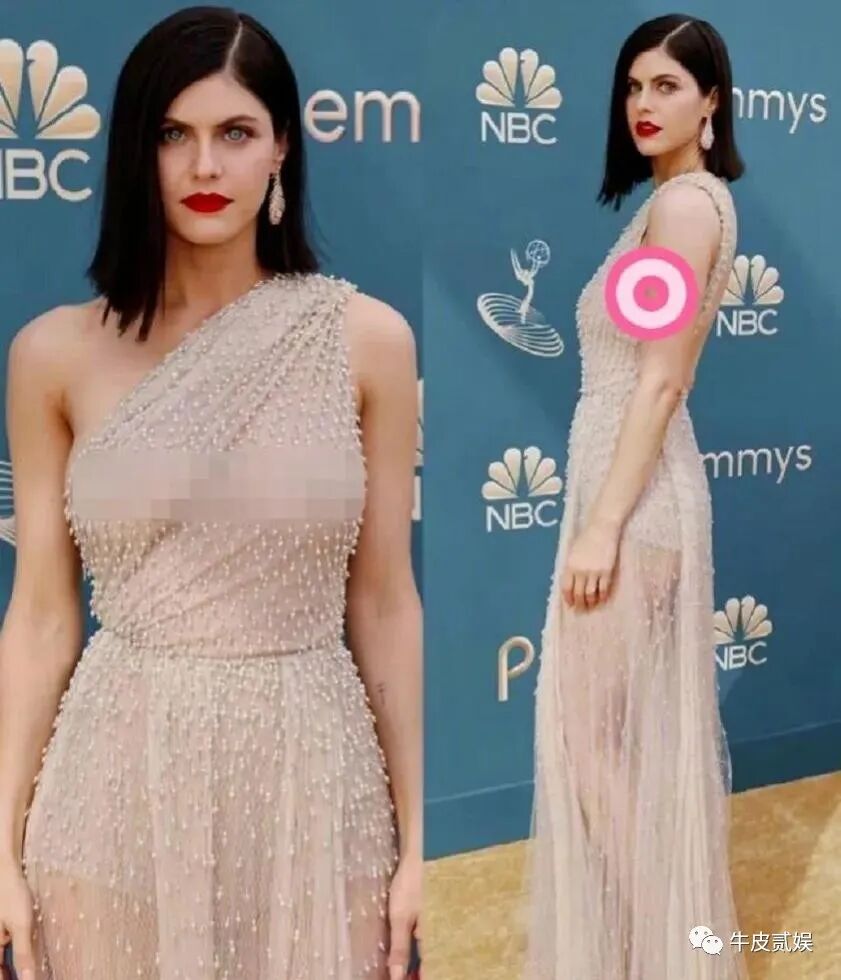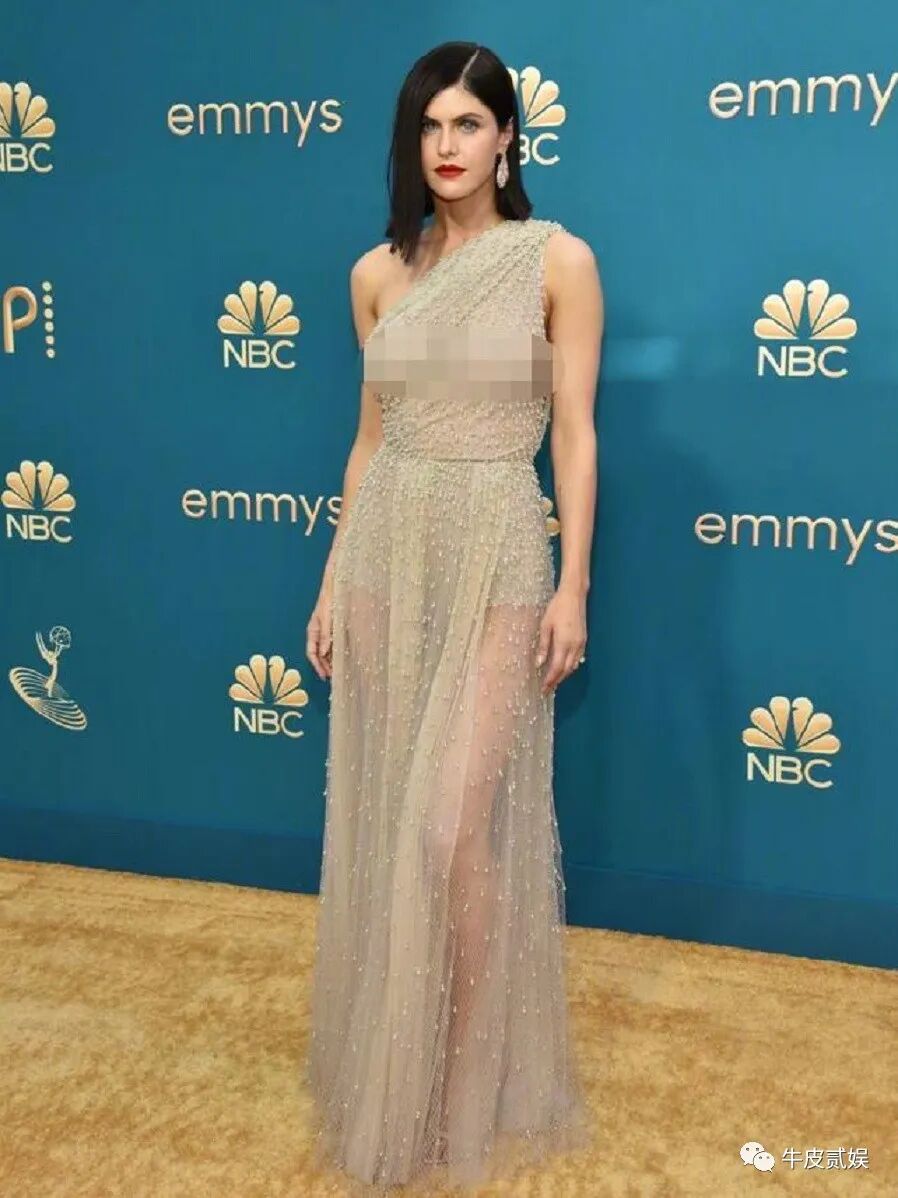 此次艾美奖,达达里奥选择了一身单肩斜挎的长款纱裙,虽然是纱裙,但裙子的上半身几乎是透明的,尺度可不小。