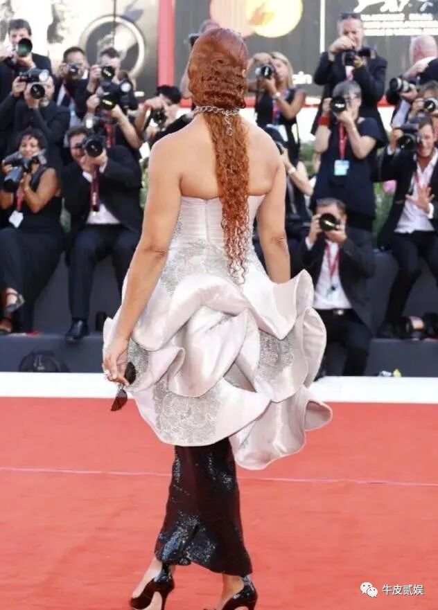去年的威尼斯电影节,赖求华的亮相就选择了一身露背包臀长裙套装。