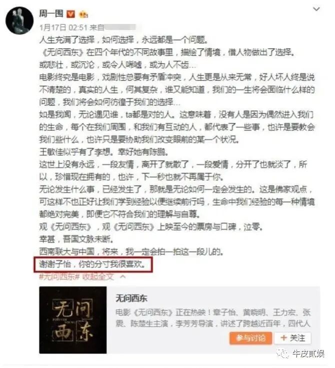 只要有机会,章子怡就要“宣传”一番周一围。也得益于此,周一围在大众心中的存在感也是蹭蹭蹭地往上涨。
